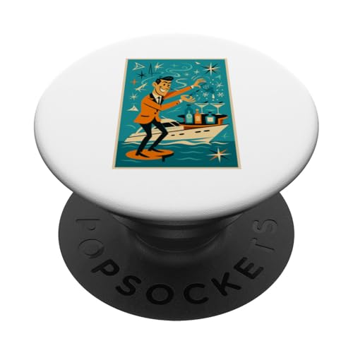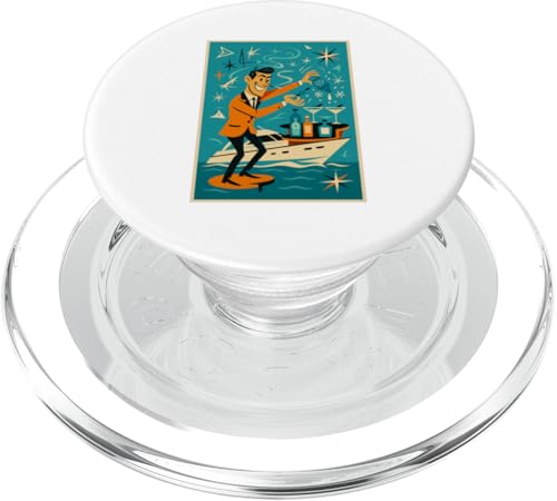 Art Graphique Vintage rétro années 50 Bateau et Cocktails PopSockets PopGrip Adhésif
