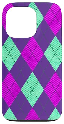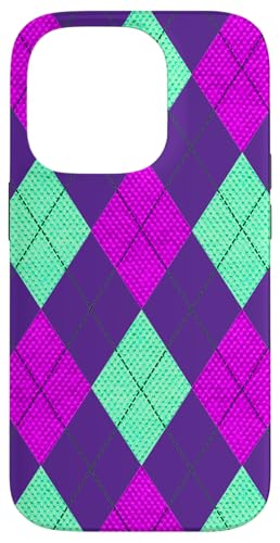 Argyle Preppy Rétro Vintage Années 80-50 Magenta et Vert Clair Coque pour iPhone 13 Pro
