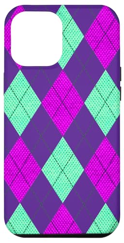 Argyle Preppy Rétro Vintage Années 80-50 Magenta et Vert Clair Coque pour iPhone 13 Pro Max