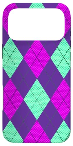 Argyle Preppy Rétro Vintage Années 80-50 Magenta et Vert Clair Coque pour iPhone 16 Pro