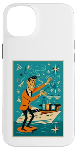Art Graphique Vintage rétro années 50 Bateau et Cocktails Coque pour iPhone 14 Plus