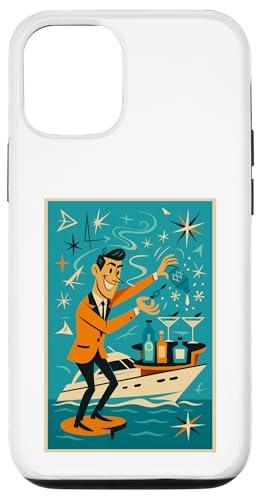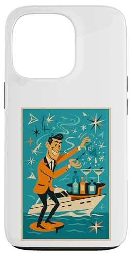 Art Graphique Vintage rétro années 50 Bateau et Cocktails Coque pour iPhone 13 Pro Max