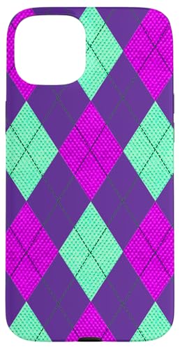 Argyle Preppy Rétro Vintage Années 80-50 Magenta et Vert Clair Coque pour iPhone 15