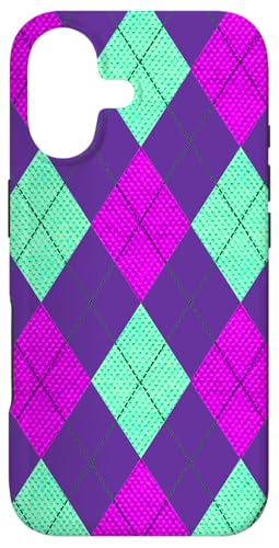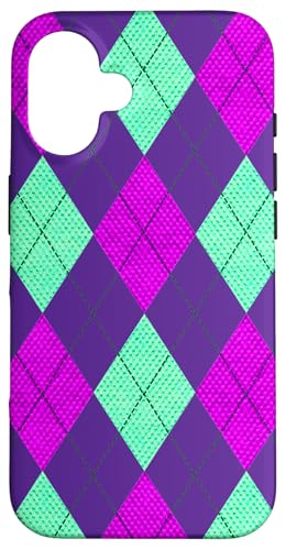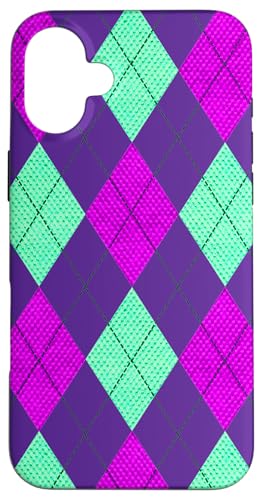 Argyle Preppy Rétro Vintage Années 80-50 Magenta et Vert Clair Coque pour iPhone 16 Plus