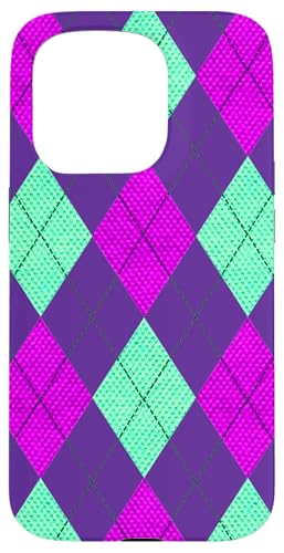Argyle Preppy Rétro Vintage Années 80-50 Magenta et Vert Clair Coque pour iPhone 15 Pro