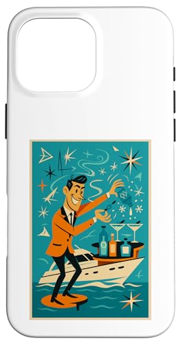 Art Graphique Vintage rétro années 50 Bateau et Cocktails Coque pour iPhone 16 Pro Max