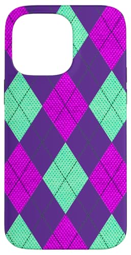 Argyle Preppy Rétro Vintage Années 80-50 Magenta et Vert Clair Coque pour iPhone 14 Pro Max