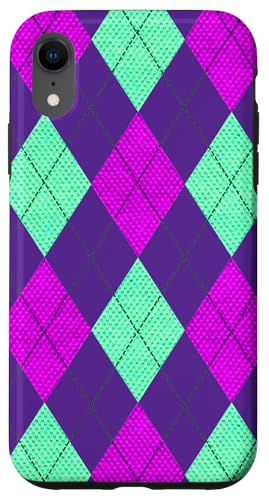 Argyle Preppy Rétro Vintage Années 80-50 Magenta et Vert Clair Coque pour iPhone XR