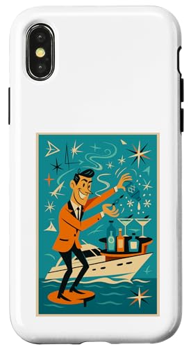 Art Graphique Vintage rétro années 50 Bateau et Cocktails Coque pour iPhone X/XS