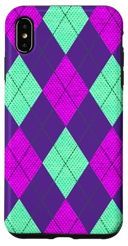 Argyle Preppy Rétro Vintage Années 80-50 Magenta et Vert Clair Coque pour iPhone XS Max