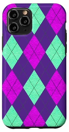 Argyle Preppy Rétro Vintage Années 80-50 Magenta et Vert Clair Coque pour iPhone 11 Pro