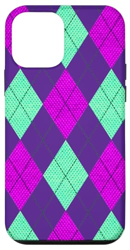 Argyle Preppy Rétro Vintage Années 80-50 Magenta et Vert Clair Coque pour iPhone 12/12 Pro
