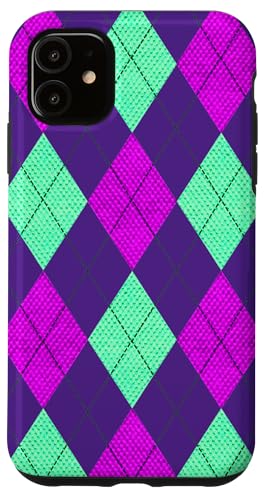 Argyle Preppy Rétro Vintage Années 80-50 Magenta et Vert Clair Coque pour iPhone 11