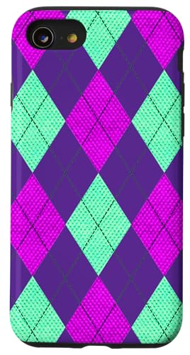 Argyle Preppy Rétro Vintage Années 80-50 Magenta et Vert Clair Coque pour iPhone SE (2020) / 7/8