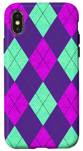 Argyle Preppy Rétro Vintage Années 80-50 Magenta et Vert Clair Coque pour iPhone X/XS
