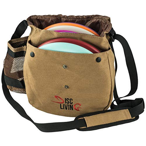 Disc Living Disc Frisbee Sac de Golf léger pour 10 disques, Sangle, Bretelles rembourrées, Double Bouton sur Le Devant, Toile résistante, Marron