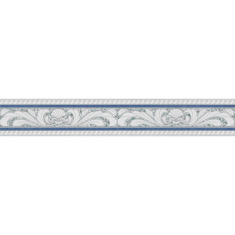 Bricoflor - Frise murale vintage élégante | Frise papier peint style baroque | Frise tapisserie couleur bleu et blanc pour salle de bain - 5,00 x