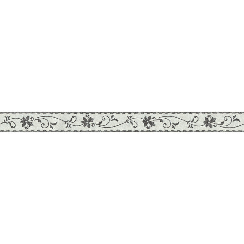 Frise murale pour chambre adulte & salon | Frise papier peint fleurie noire & grise | Frise tapisserie style baroque motif fleur - 5,00 x 0,05 m