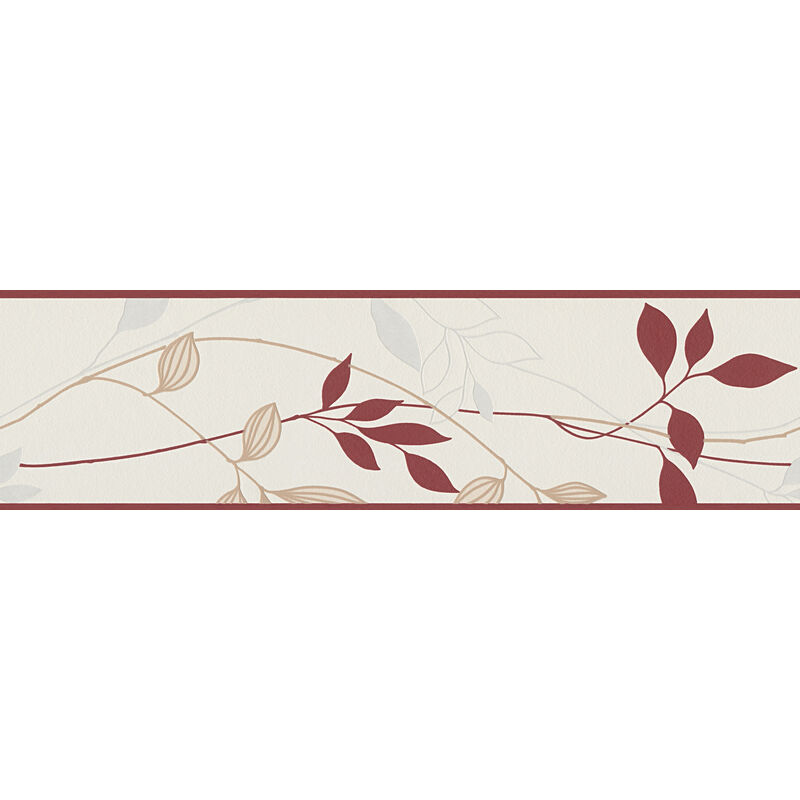 Bricoflor - Frise murale fleurie idéale cuisine & chambre | Frise papier peint fleuri pour salon | Frise tapisserie motif feuille gris & rouge - 5,00