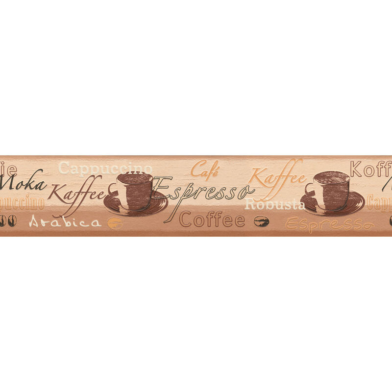 A.s.creations - Frise papier peint à motif et inscription café Frise tapisserie idéale pour cuisine Frise murale couleur orange, marron et blanc