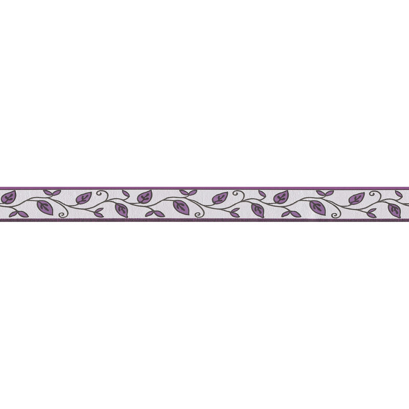 Frise murale pour chambre adulte violette & grise | Frise papier peint feuille violet & gris | Frise tapisserie salon motif végétal - 5,00 x 0,05 m