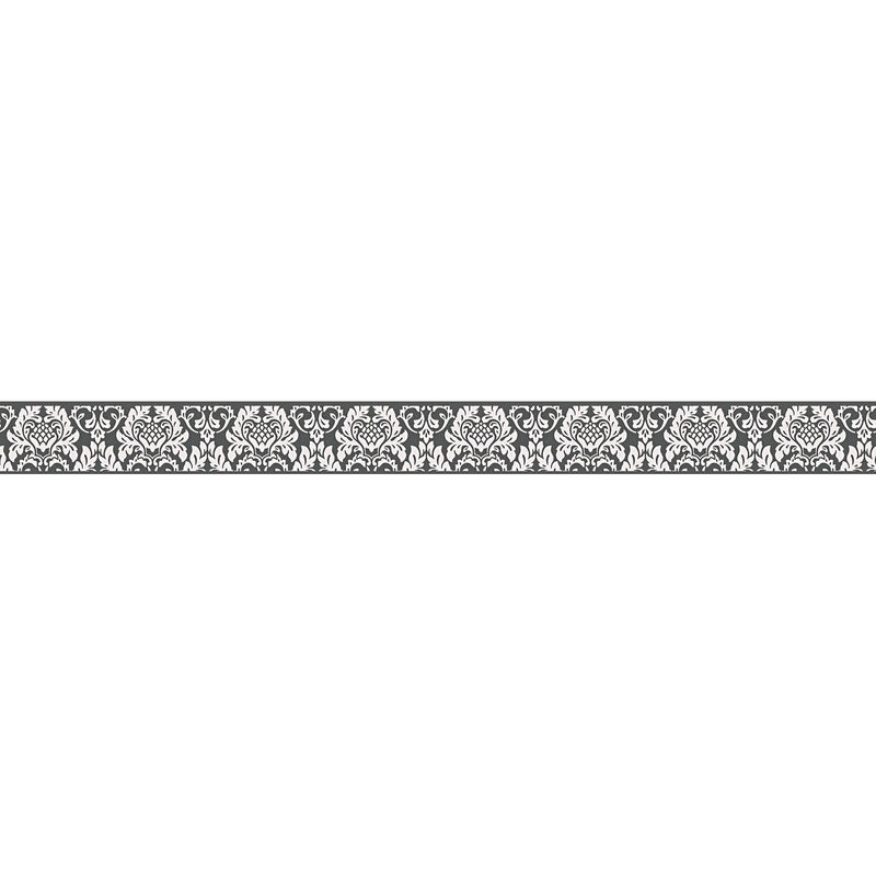 A.s.creations - Frise papier peint noir et blanc chic pour chambre Frise tapisserie à motif fleuri baroque Frise murale idéale pour salon - Noir,
