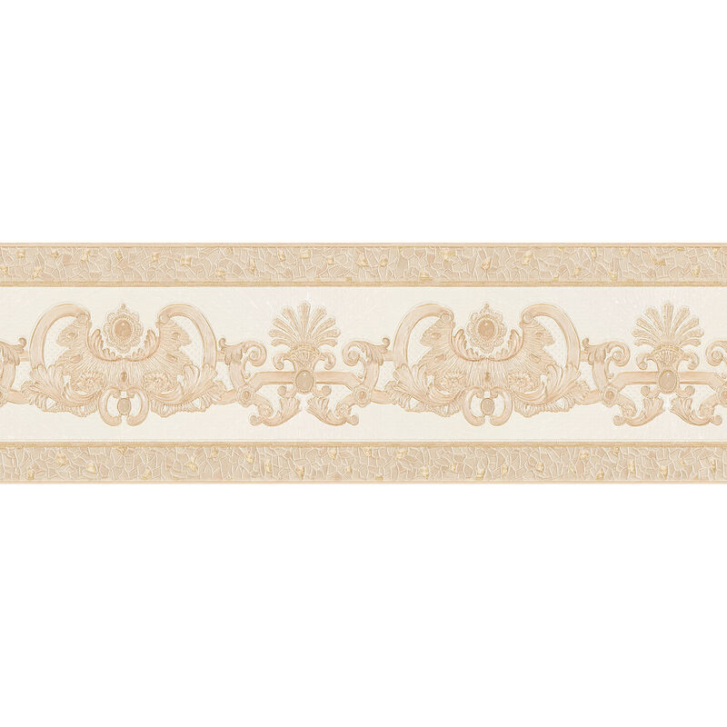 A.s.creations - Frise papier peint baroque | Frise tapisserie intissée beige crème | Frise murale élégante pour salon & chambre adulte - 5,00 x 0,17 m