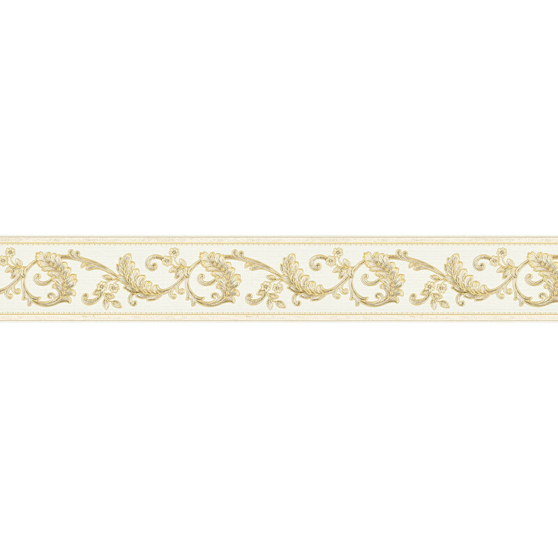 A.s.creations - Frise papier peint motif élégant doré Frise tapisserie dorée auto-adhésive chambre adulte Frise papier peint idéale salon - Or, Blanc