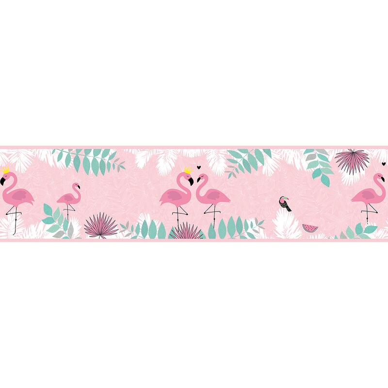 A.s.creations - Frise papier peint animaux flamant rose Frise murale parfaite pour chambre d'enfant Frise papier peint rose facile à coller