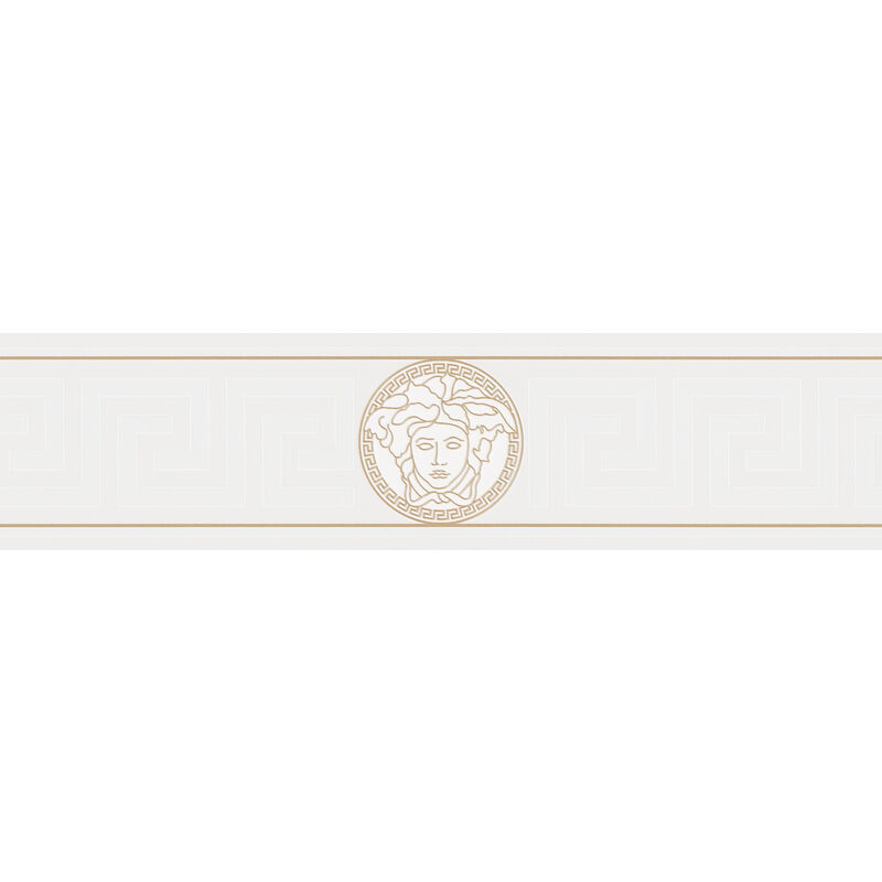 A.s.creations - Frise papier peint motif grec avec Médusa Frise tapisserie chic blanc crème & or Frise murale élégante pour couloir & chambre adulte