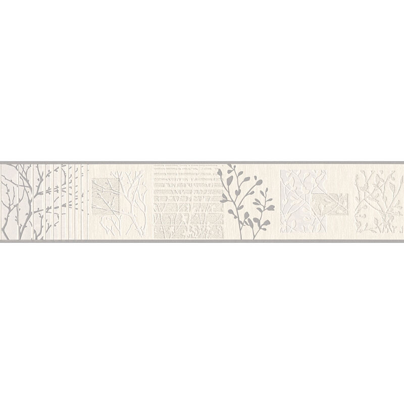 As Creation - Frise papier peint grise motif arbre & fleur Frise tapisserie gris motif pour chambre adulte Frise murale salon & couloir - Gris, Argent