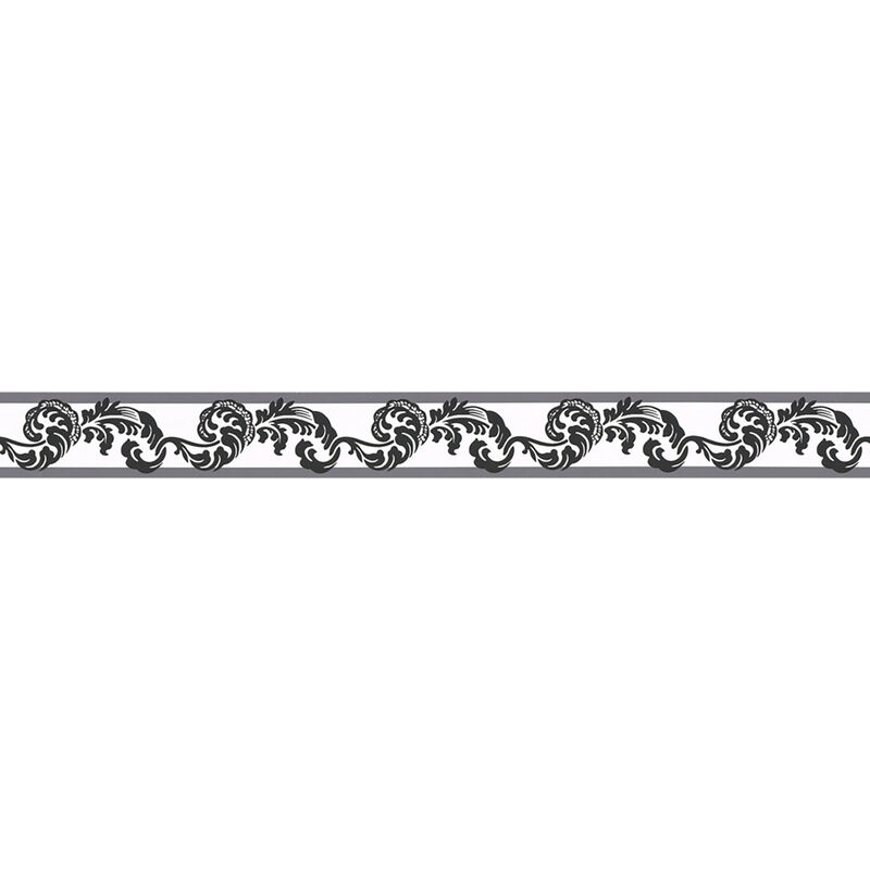 A.s.creations - Frise papier peint style baroque Friste tapisserie à motif noir et blanc Frise murale élégante ideále pour chambre et salon - Blanc,