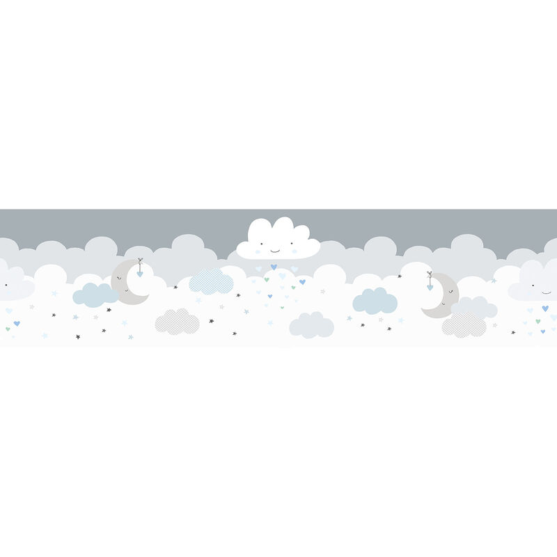 A.S. Création Frise Papier Peint Adhesive Lovely Kids Dreamy Sky Frise Papier peint adhesive 5.00 m x 0.155 m Gris Bleu Blanc Fabriqué en Allemagne 403744 403744
