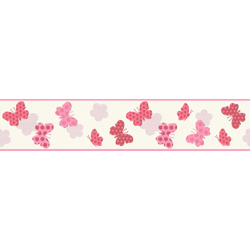 A.s.creations - Frise papier peint papillon pour chambre enfant Frise tapisserie rose blanc & rouge Frise murale pour chambre de fille - Rose, Rouge