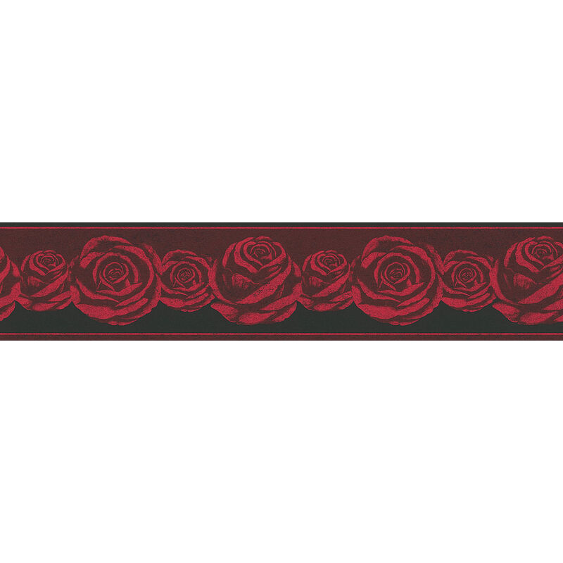 A.s.creations - Frise papier peint fleuri rouge & noir Frise tapisserie motif rose pour salon Frise murale chambre adulte motif fleur rouge - Rouge,