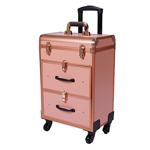 Mallette de maquillage 2 en 1 avec roulettes et 8 tiroirs, amovible, pour coiffeur, cosmétique, noir