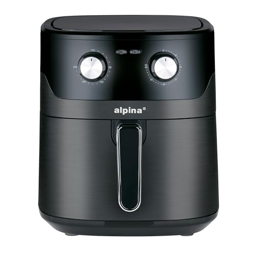 alpina Air Fryer 6L - Airfryer pour 4 à 6 Personnes - Friteuse sans Huile avec Température Réglable de 80°C à 200°C - Friteuse Electrique avec Minuterie jusqu'à 60 Minutes - Noir