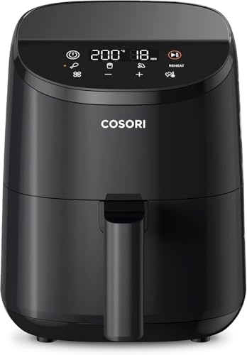 COSORI Air Fryer 70-205℃ 4-en-1 Friteuse Sans Huile 2L,Idéal Pour Les Collations,Faciles à Croustillants,97% d'Huile en Moins,30+Recettes en Ligne,1-2 Personnes,Noir
