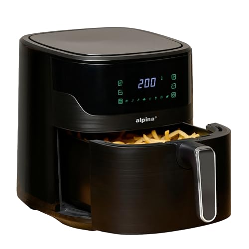alpina Air Fryer 6L Numérique - Airfryer pour 4 à 6 personnes - Friteuse Sans Huile avec Température Réglable de 80°C à 200°C - Minuterie jusqu'à 60 minutes - Noir