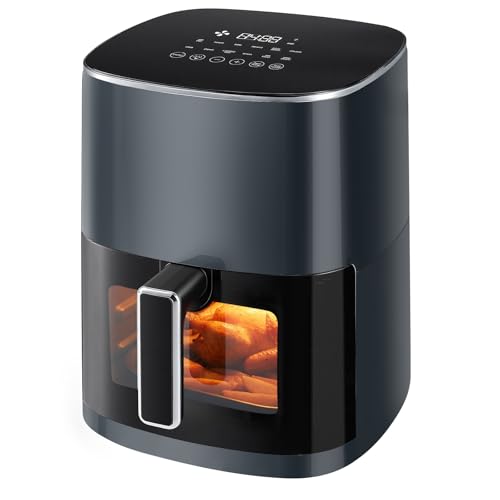 Sweetcrispy Friteuse à air chaud - Friteuse à air chaud - 6 litres - Avec fenêtre de visualisation - Fonctions 12 en 1 et écran tactile - Air Fryer - Cuisson saine sans graisse - Panier anti-adhésif