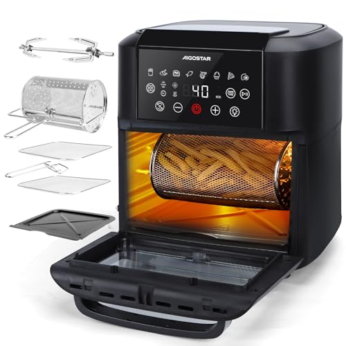 Aigostar Owen - Four à air multifonction, friteuse à air XXL de 12 litres, 1700 W. Écran LED tactile, 8 modes prédéfinis, 6 accessoires inclus, système rotatif. Sans BPA
