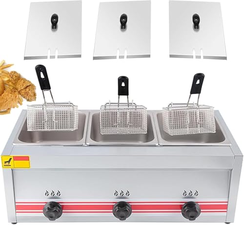 Friteuse à Gaz Extérieure, Friteuse Commerciale à Double Brûleur, Friteuse De Cuisine à Double Réservoir en Acier Inoxydable De Comptoir 10l / 20l avec Paniers Amovibles Et Cou, 30l