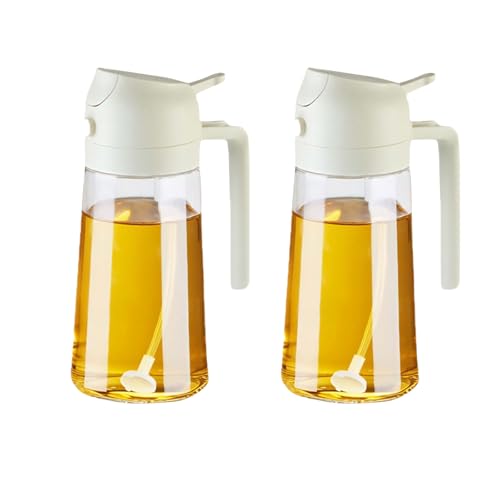Générique 2 Pièces Pulvérisateur et Distributeur 2-en-1 470ml – Spray Huile en Verre Anti-UV, sans BPA, pour Cuisine, Salades, Barbecue et Friteuse d'air,Blanc,2 Pack