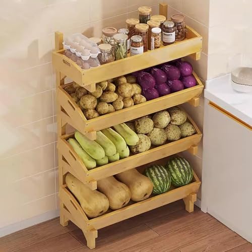Panier à fruits et légumes en bois - 4 niveaux - Support de rangement amovible pour supermarché et organisation de la maison