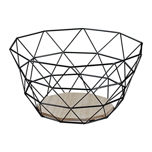 Relaxdays Corbeille à Fruits, Panier décoratif, légumes, Fer & Bois, Design Industriel, HxLxP : 14,5x28x28 cm, Noir