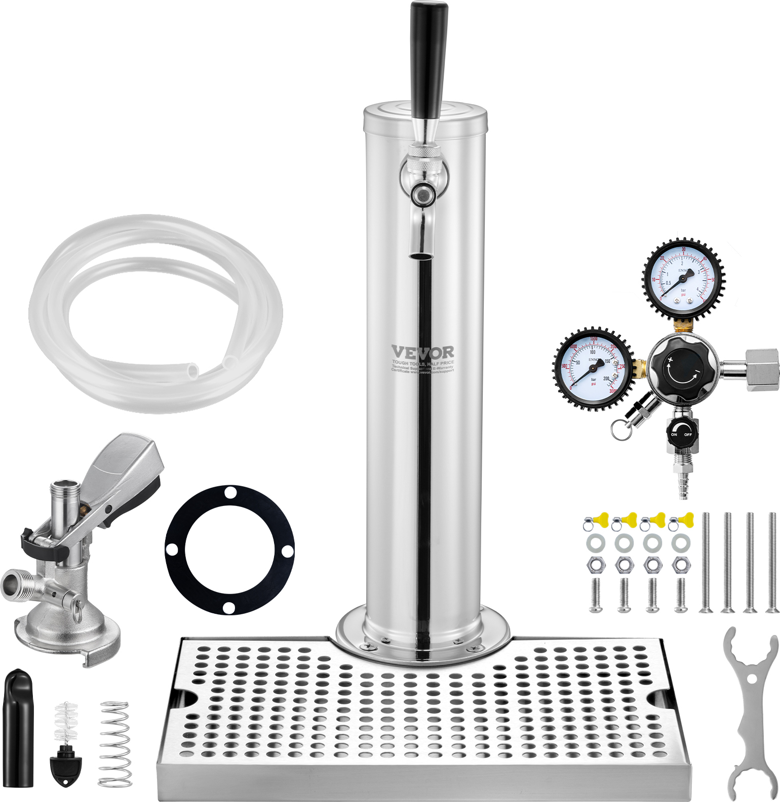 Kit tour à bière VEVOR, kit de conversion de bière pour robinet individuel, distributeur de bière en tour en acier inoxydable avec double mesureur W21.8-régulateur & raccord de fût S-System, égouttoir à bière pour les fêtes à la maison