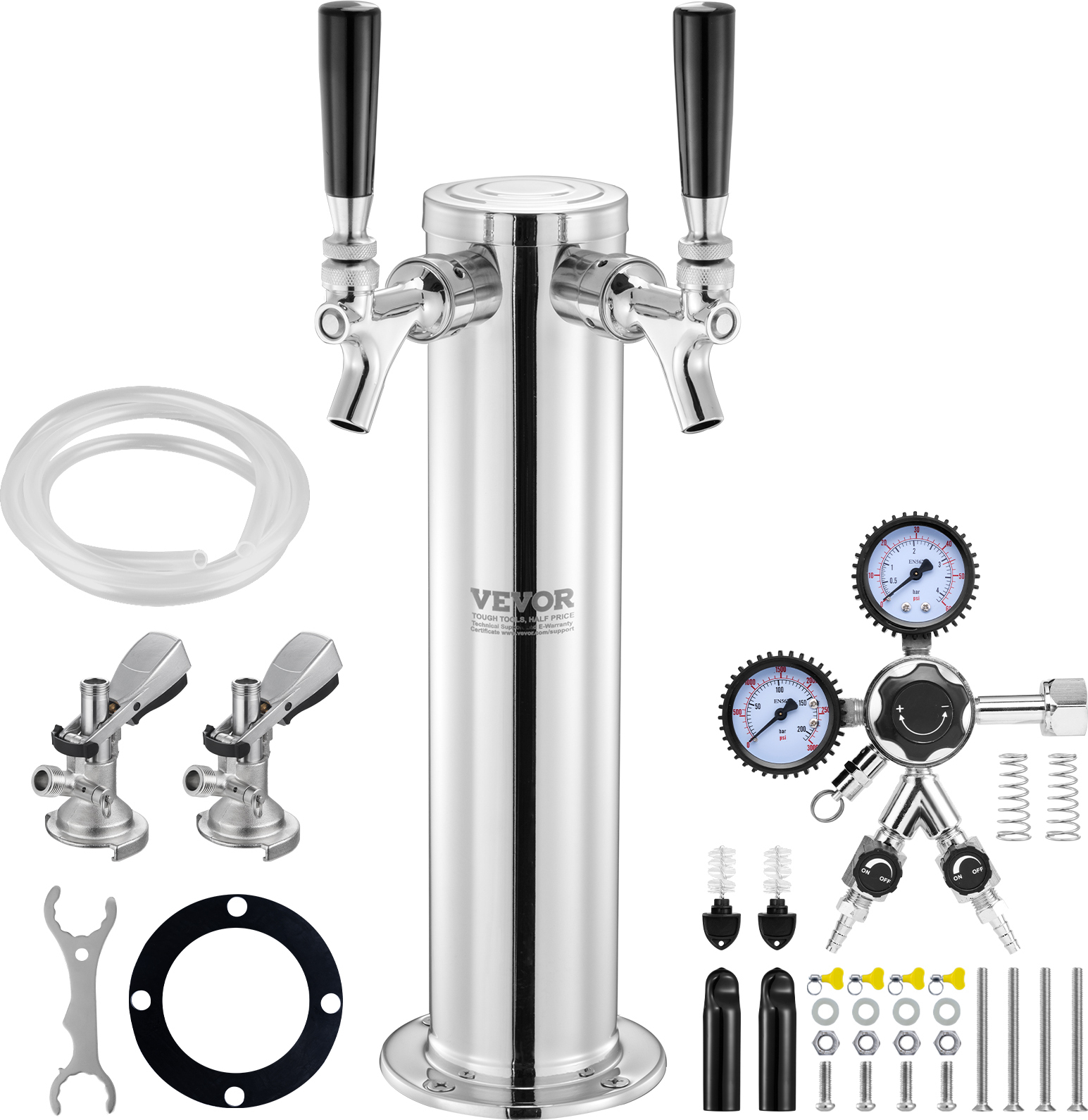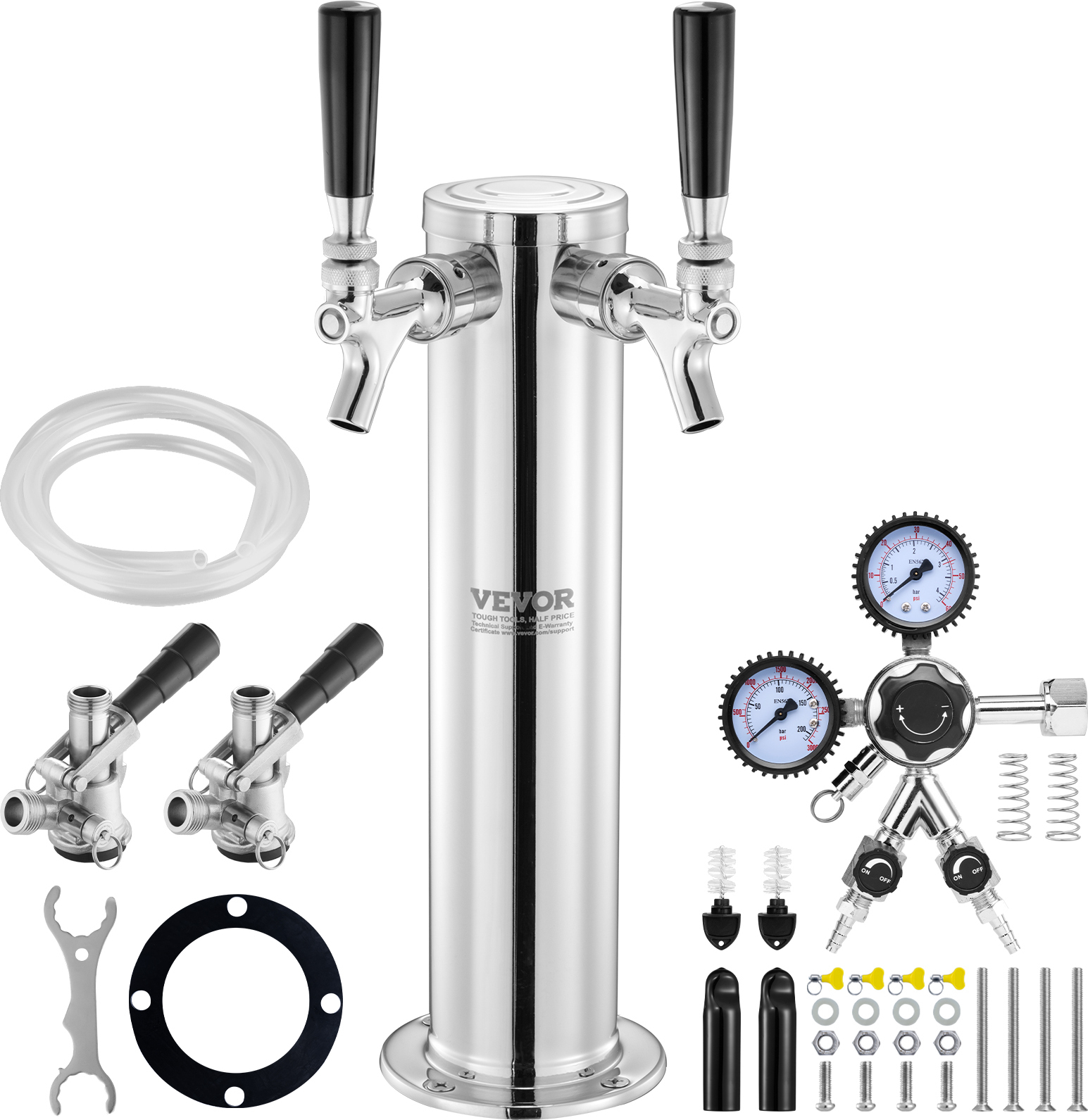 VEVOR Kit tour de gerbeur, kit de conversion de bière avec 2 robinets de soutirage, distributeur de bière en tour en acier inoxydable avec double mesureur W21.8-régulateur et raccord de fût S-System, égouttoir à bière pour les fêtes à domicile