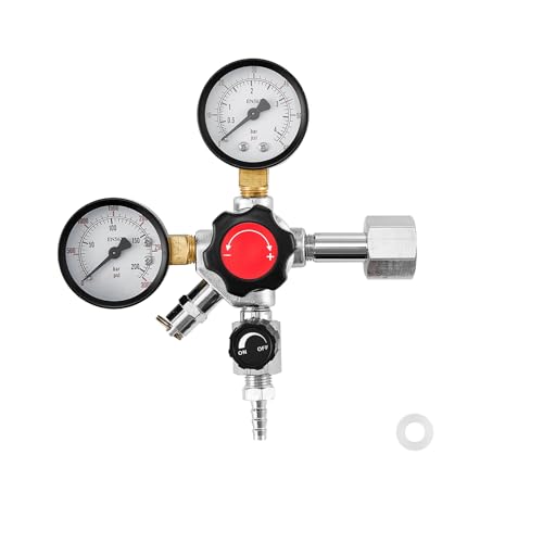VEVOR Régulateur de CO2, Détendeur pour Tireuse à Bière à Double Manomètre et Valve Unique, Pression Réglable 0-60 psi, Compatible avec Raccord W21,8, pour Bière Pression et Réfrigérateur à Fût