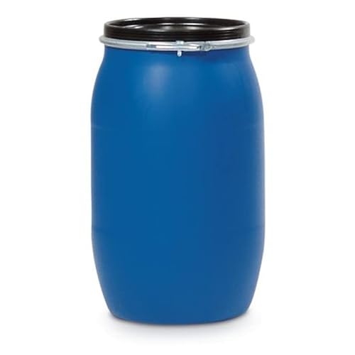 Le Plasteo Fût à col large de 220 litres avec couvercle à clapet en polyéthylène haute densité sans BPA, convient à un usage alimentaire, polyvalent comme tonneau à nourriture, citerne d'eau de pluie