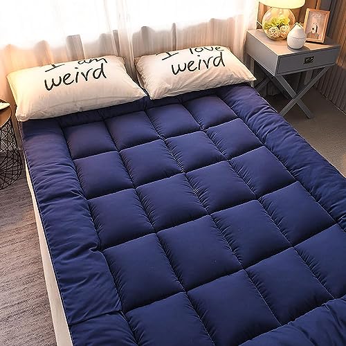 FZKun Matelas Futon Pliable 1 Place, Matelas de Sol Japonais Portable Pliable Tatami Lit Futon Doux Matelas d'appoint Matelassé pour Lit de Couchage Simple (Bleu Foncé,0.9 * 1.9m)